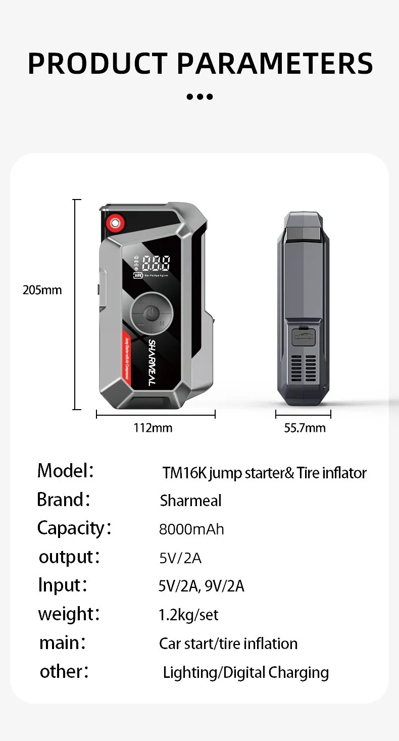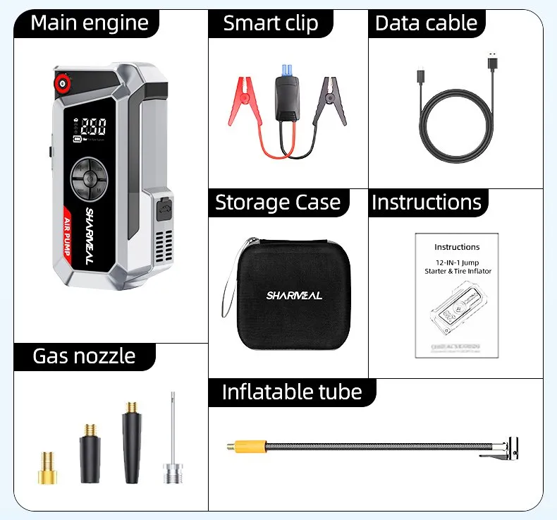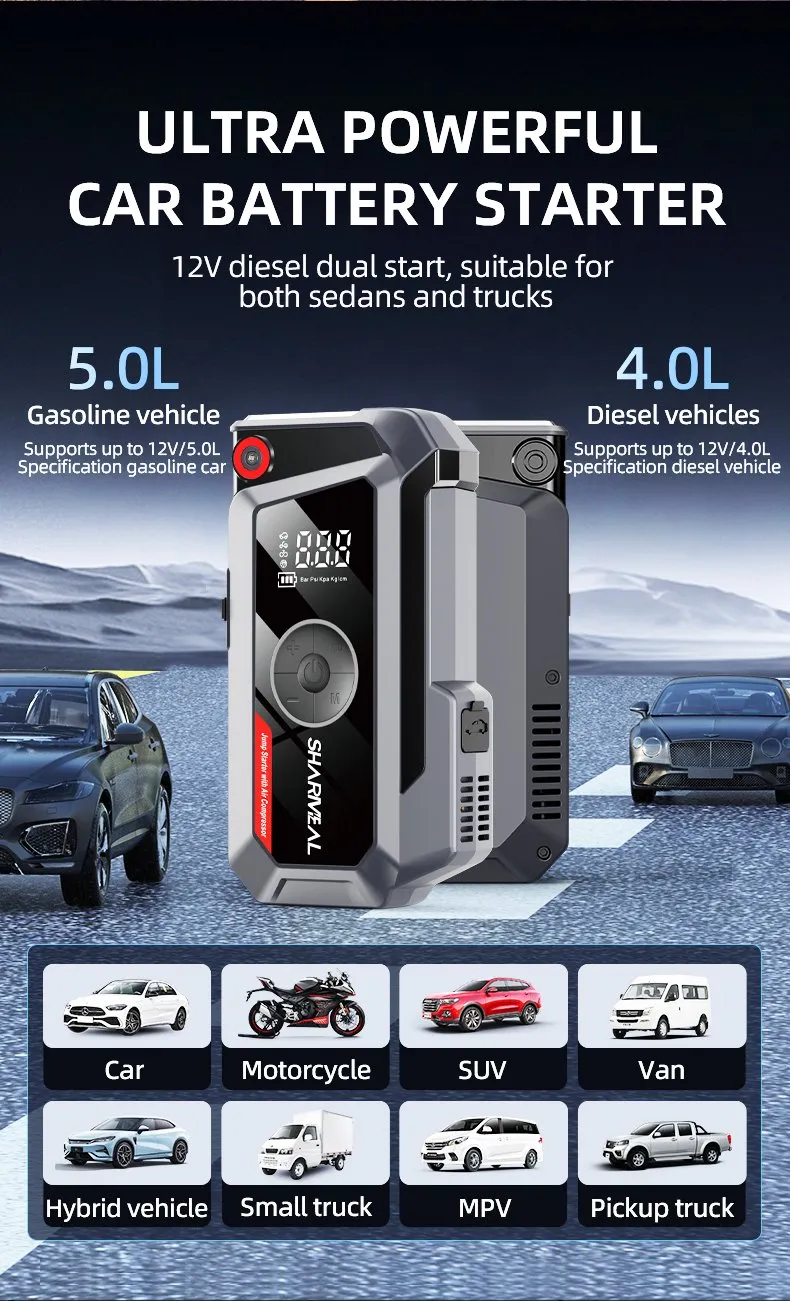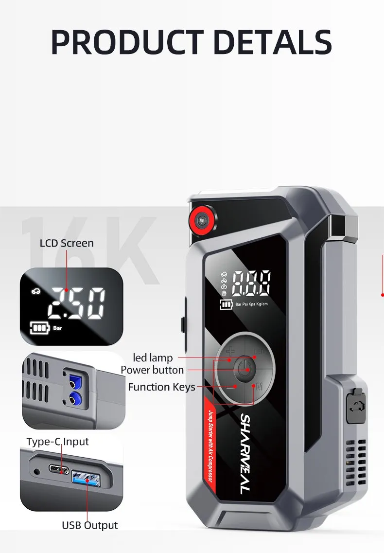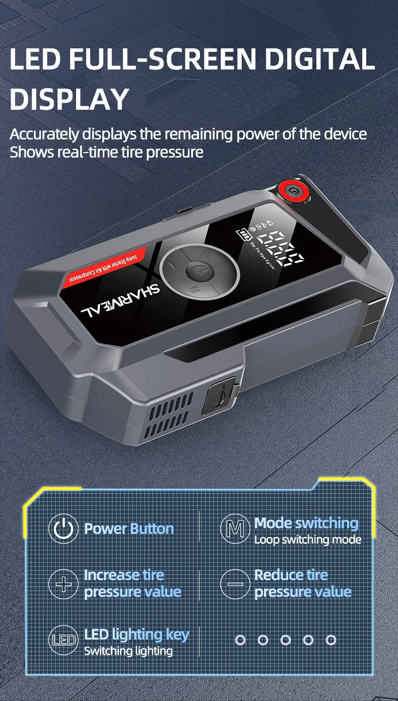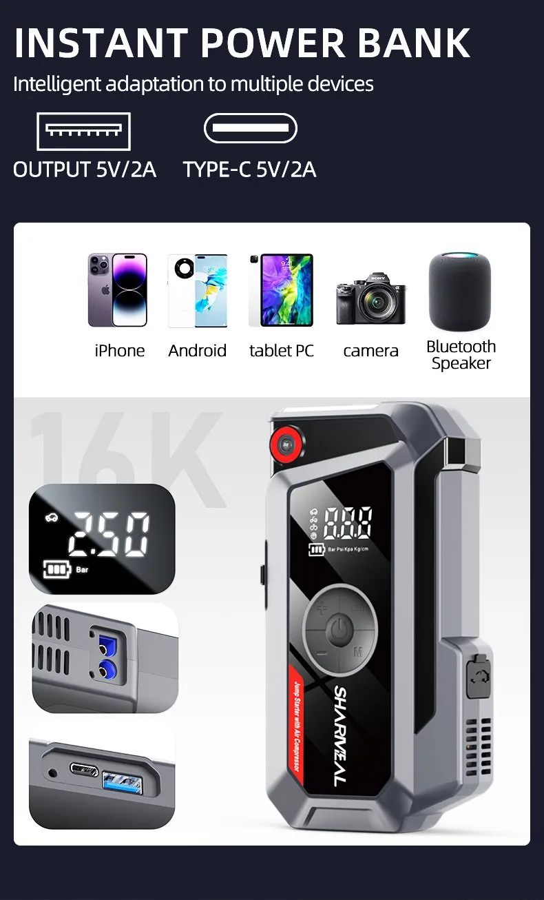 Newest ALL-IN-ONE Built-in Air Compressor 12V Emergency Rescue Tool Quick Charge Car Jumper Power bank