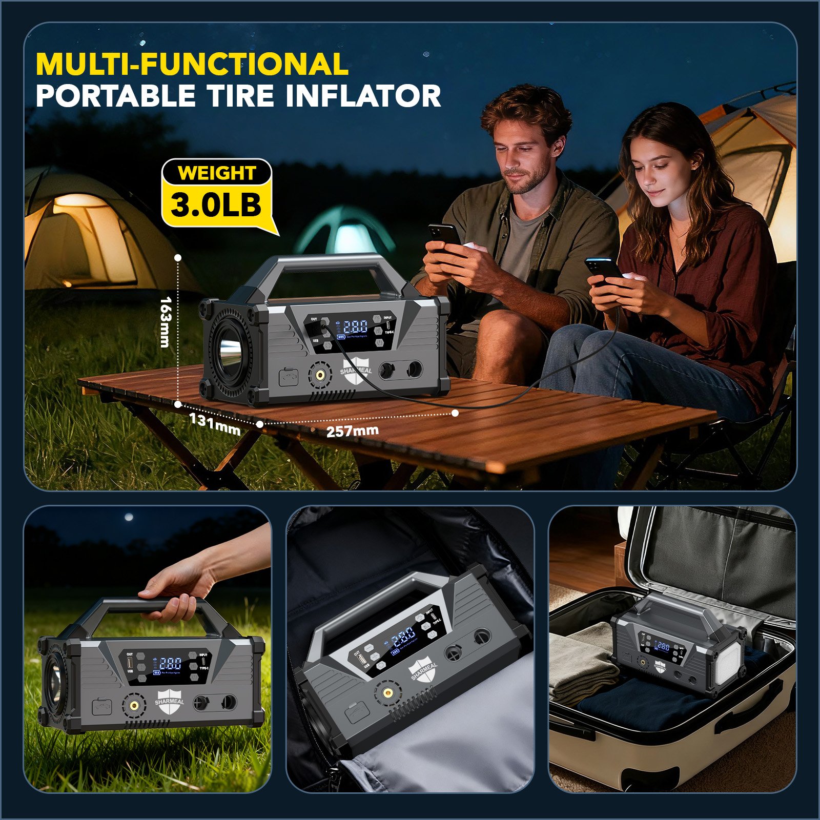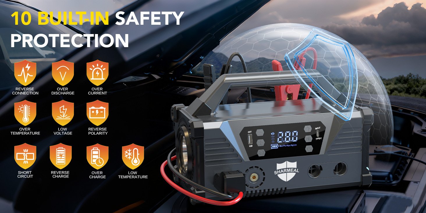 store in your car trunk, backpack, or garage, ready to use whenever you need it. Whether you’re facing a dead car battery on a remote road, need to inflate a flat tire before a trip, or require reliable